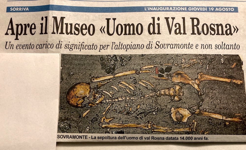 Il Museo dell’Uomo di Val Rosna è stato recentemente inaugurato a Sovramonte. Il Museo è incentrato sui ritrovamenti ossei individuati e recuperati da Aldo Villabruna in una sepoltura datata 14.000 anni fa, attribuita a un cacciatore della specie Homo Sapiens. Aldo Villabruna stesso condurrà gli Amici nelle 9 sale tematiche del Museo corredate da reperti, gigantografie, ricostruzioni e filmati che rendono unico questo reperto e il suo museo.